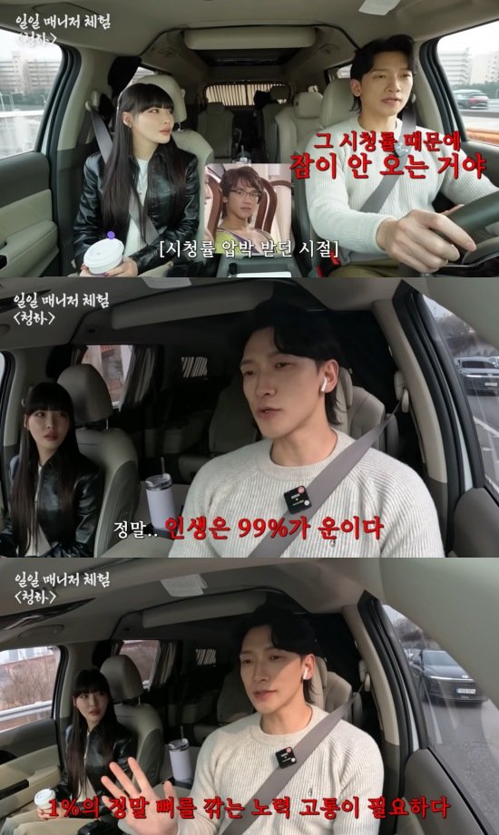 비는 "근데 하다 보니까 정말 인생은 99% 운이다. 대신 99% 운을 맞이하기 위해 1% 정말 뼈를 깎는 노력, 고통이 필요하다"고 말했다. 그러면서 "청하가 라디오를 부담 없이 즐겼으면 좋겠다"고 조언했다.
