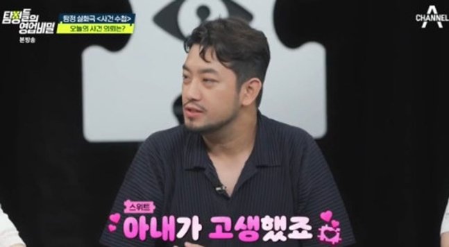 침착맨은 1일 방송된 채널A 예능프로그램 '탐정들의 영업비밀'에 나와 회사 운영 관련 얘기를 했다. 이날 방송에선 부부가 함께 스타트업을 성공시킨 후 남편이 이혼을 요구한 사례가 나왔다. 그러자 김풍은 "침착맨도 아내와 스타트업을 했다"고 했고, 데프콘이 "아내는 믿느냐"고 하자 침착맨은 "아내가 다 한다. 저는 아는 게 없다"고 말했다.