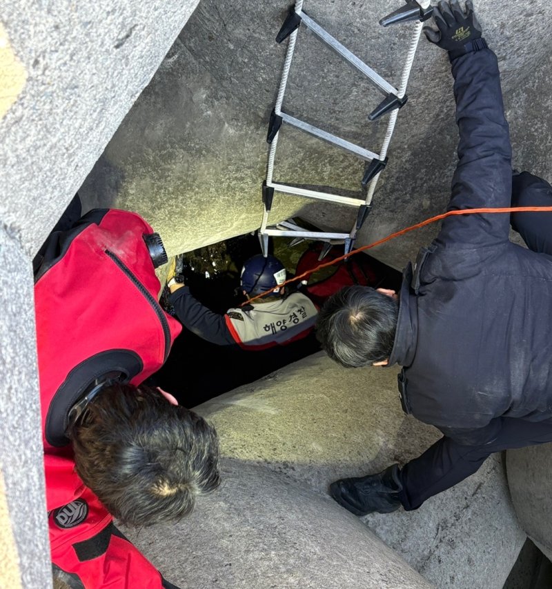 신고를 받고 출동한 울산해양경찰서는 소방과 합동으로 1시간 여 만에 A씨를 구조했다.