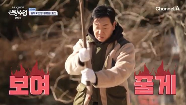 모두가 긴장하며 지켜본 가운데 김일우가 처음으로 장작을 팼다.