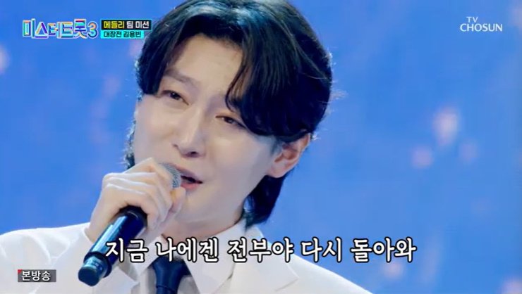 13일 오후 방송된 TV조선 예능 프로그램 '미스터트롯3'에서는 가수 김용빈이 팀 순위를 끌어올리기 위해 한승기의 '연인'을 열창했다.