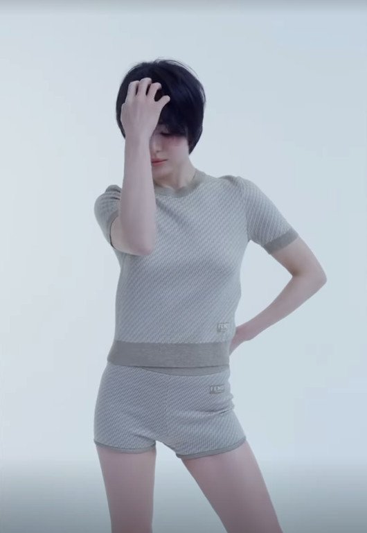 영상 속 송혜교는 단발에 고급스러운 패턴의 반소매 티셔츠와 짧은 바지를 입고 고혹적 미모를 선보였다.
