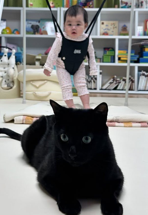 사진 속 재이 양은 유아용 놀이기구 '점퍼루'를 타고 걷기 연습을 하고 있는 모습이다.