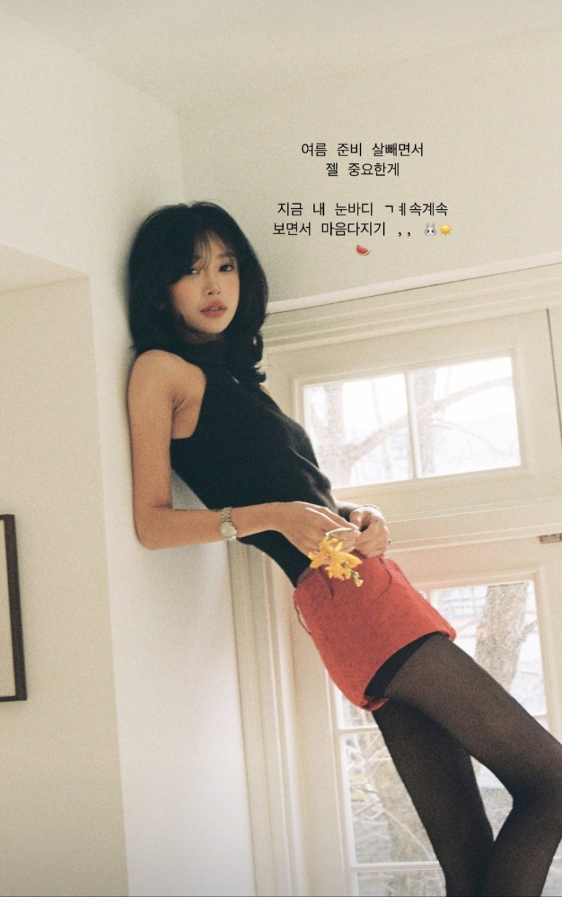 이날 최준희는 자신의 소셜미디어에 "여름 준비 살 빼면서 제일 중요한게 지금 내 눈바디. 계속 보면서 마음 다지기"라고 적고 사진을 올렸다.