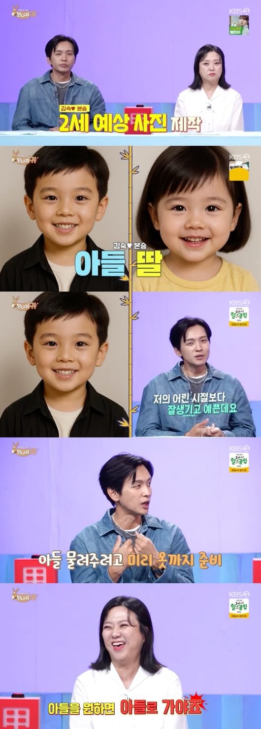 김숙은 같은 질문을 받고 "아들을 원하면 아들로 가야지"라고 말해 웃음을 자아냈다.