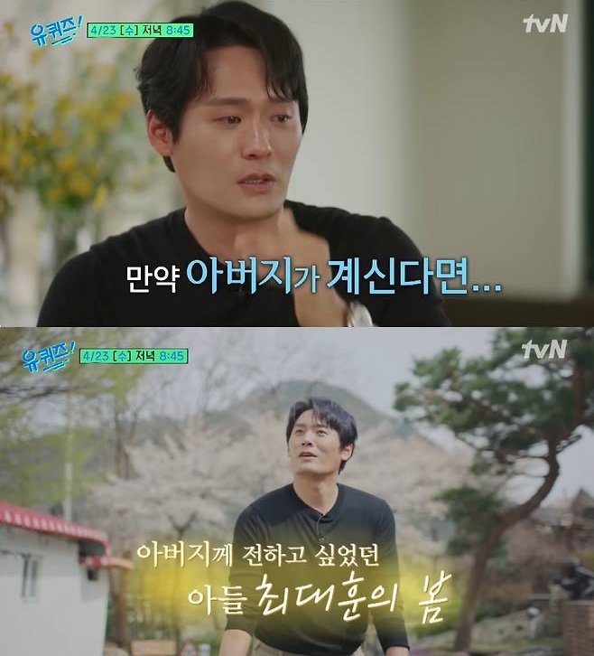 최대훈은 "아버지에게 '12년만 기다리라. 차도 사드리고 뭐도 해주고 다 그럴게' 했는데 못 사드렸다"면서 "지금 아버지가 살아계신다면 이런 꽃길만 거닐어도 좋아하실 것 같다"라며 눈물을 흘렸다.