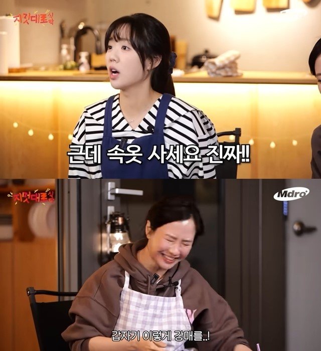 송지효는 "갑자기 강매를"이라면서 웃었고, 지예은은 "원래 있던 속옷을 버리고 그냥 언니 거로 싹 바꿨다"고 했다.
