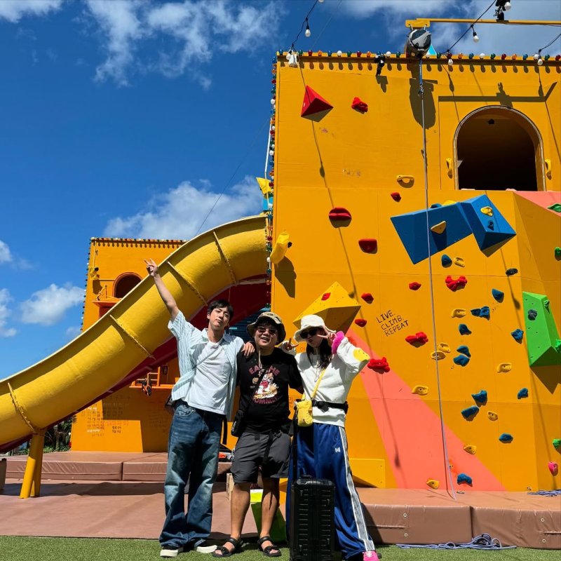 공개된 사진 속에서 곽튜브는 기안장 직원인 그룹 '방탄소년단' 멤버 진(김석진)과 배우 지예은 사이에서 해맑게 웃고 있다.