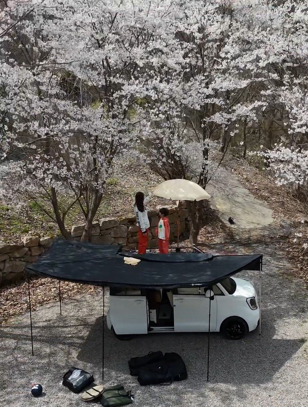 벚꽃이 만발한 풍경도 이목을 끌었다. 이를 본 누리꾼들은 "벚꽃 캠핑 예쁘네요. 행복한 모습도 너무 예쁘네요", "제대로 힐링하셨네요" 등의 댓글을 올렸다.
