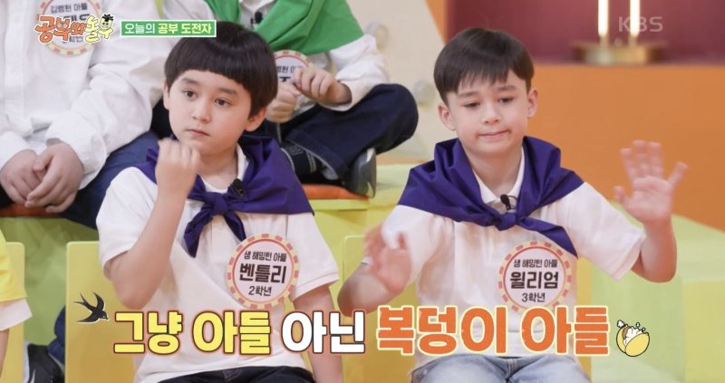 올해 만 9살인 윌리엄은 여전히 귀여운 외모로 훈훈함을 자아냈다. 올해 만 8살인 벤틀리도 귀여운 매력을 뽐냈다. 윌리엄·벤틀리는 과거 KBS 2TV 예능물 '슈퍼맨이 돌아왔다' 출연 때와 마찬가지로 또렷한 이목구비를 자랑했다.