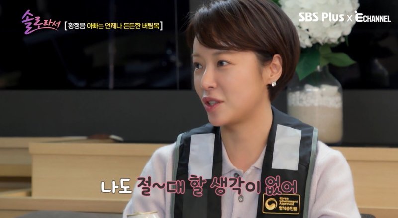 그러면서 "내가 재혼하는 게 좋냐, 안 하는 게 좋냐"고 물었다. 황정음의 아버지는 "재혼은 하지 말아야 한다. 절대적이다"라고 단호하게 답했다. 황정음도 "나도 절대 할 생각 없다"고 말했다.