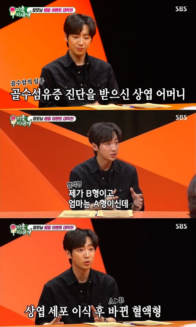"오늘 오전 어머니가 퇴원해서 퇴원 수속 밟고 왔다"며 "내가 B형이고 엄마는 A형인데, 세포 이식을 하면서 어머니가 A형에서 B형이 됐다. 새 인생을 시작하게 됐다. 이제 생착만 남았는데, 내가 잘 모시면 된다"고 했다.