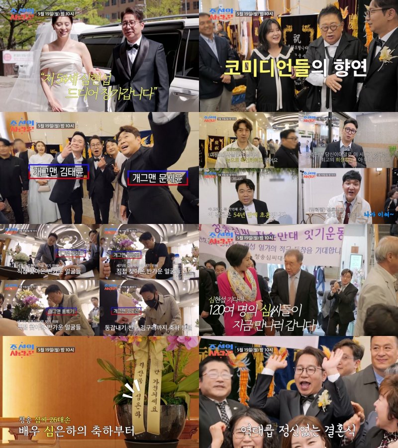 결혼식장을 가득 메운 유명 심씨들의 향연에 MC 김국진은 "이거 영화 아니냐"며 감탄했다. 청송 심씨가 낳은 배우 심은하도 육성으로 축하 인사를 전했다. 27대인 개그우먼 심진화는 "우리 할배 장가간다. 만세"라며 두 손을 치켜들었다.