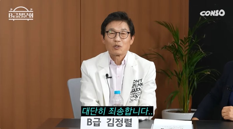 지난 23일 공개된 웹 예능 'B급 청문회'에는 코미디언 김정렬과 황기순이 게스트로 출연했다.