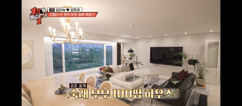 11일 방송된 JTBC 부부 예능물 '1호가 될 순 없어2'에선 330㎡(약 100평)가량의 임미숙·김학래 부부의 집이 공개됐다. 집에서 L타워가 보이는 고급 아파트였다.