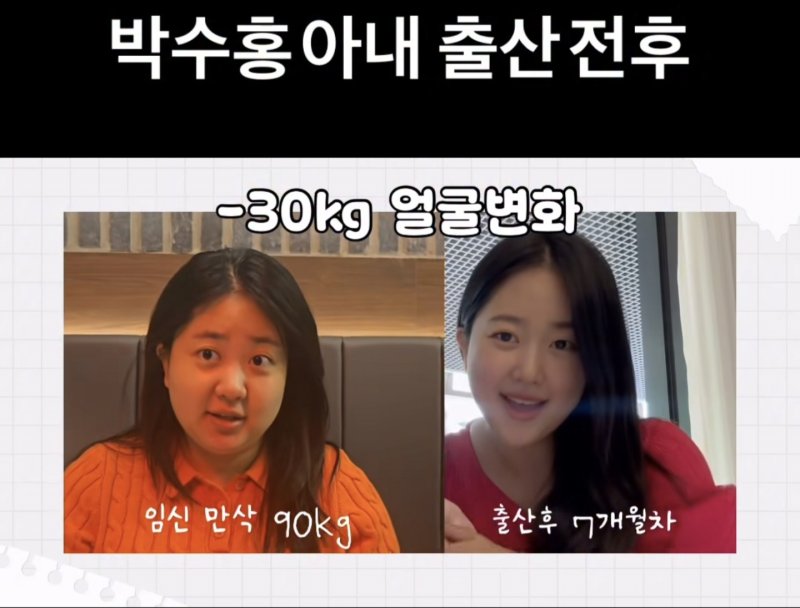 [서울=뉴시스] 신효령 기자 = 개그맨 박수홍이 아내 김다예의 다이어트 전후 모습을 공개했다.