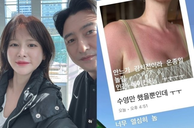 사진에는 이혜원의 피부가 붉게 달아오른 모습이 담겼다.