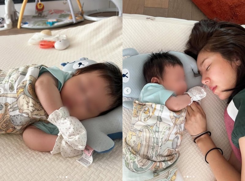 손담비는 지난 18일 자신의 소셜미디어에 "나랑 해이 둘 다 기절"이라고 적고 사진 여러 장을 올렸다.