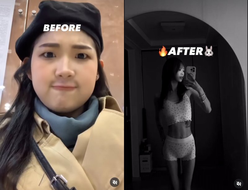 "살 뺀 게 전부는 아니지만, 전부였던 순간들이 있으니까"라고 털어놓으며 다이어트 전후 사진을 올렸다.