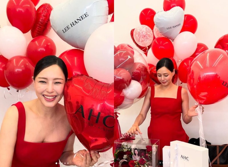 맑은 피부와 청순한 미모도 돋보였다. 주변에 이하늬 이름이 새겨진 풍선과 꽃 등이 가득했다.