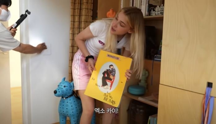 미초바는 한 방에서 "여기 제가 좋아하는 것들을 모아놓았다"며 "그 중 제일 중요한 건 엑소 카이 사진"이라고 말했다.