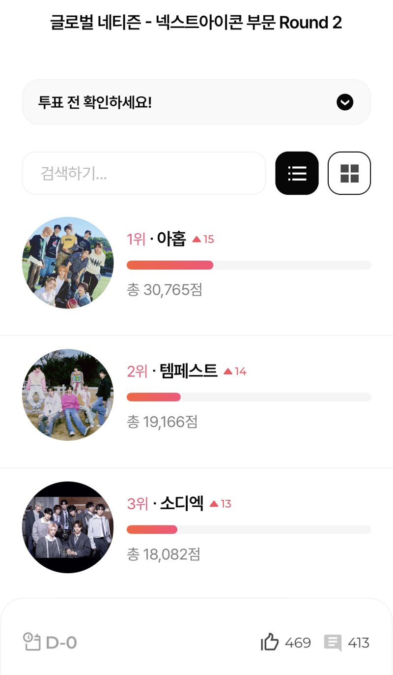지난 9일부터 전날 오후 11시59분까지 스타덤 애플리케이션(앱) 내 진행해온 '글로벌네티즌상'의 '넥스트 아이콘' 부문 2라운드에선 8팀이 상위권에 자리했다.