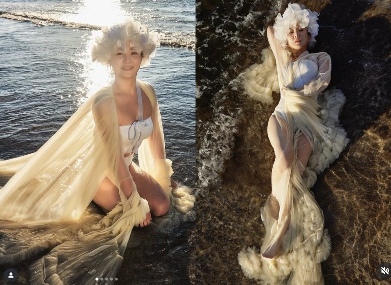 아름다운 제주 바다와 박나래의 드레스가 어우러져 감탄을 자아냈다.