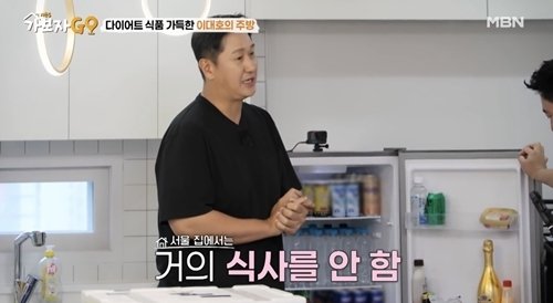 그는 "마실 것밖에 없고 반찬 같은 건 없다. 집에서는 거의 밥을 안 해 먹는다. 매니저가 있을 때는 집에서 같이 먹는데 요즘에는 다이어트 냉동식품을 먹는다"고 말했다.