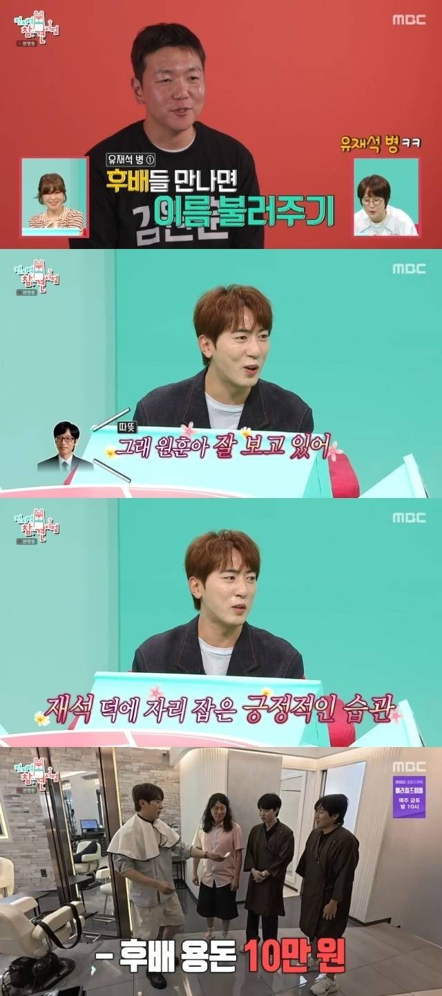 이어 "(유재석이) 후배들에게 잘해주기로 유명하잖나. 원훈형도 후배들 만나면 이름 외워 불러주고 연락해서 잘 보고 있다고 하고 오며 가며 마주치는 스태프 이름도 외우려고 한다"고 했다.