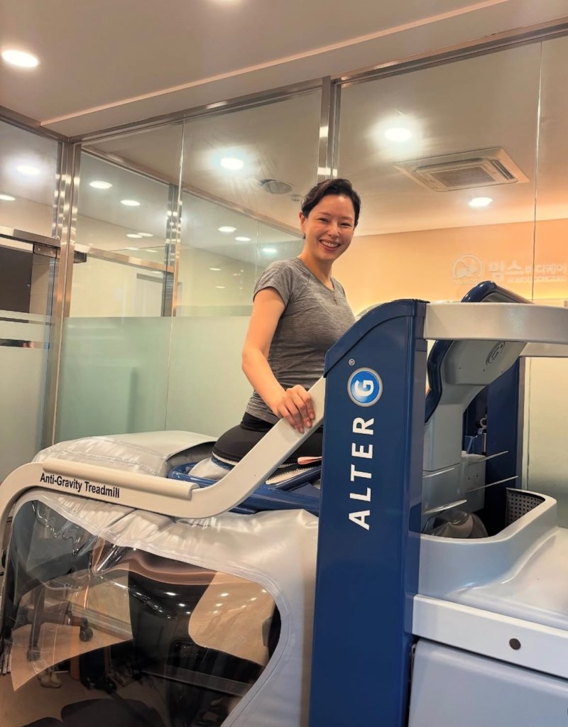 사진 속 이하늬는 밝게 미소 지으며 런닝머신을 타고 있다.