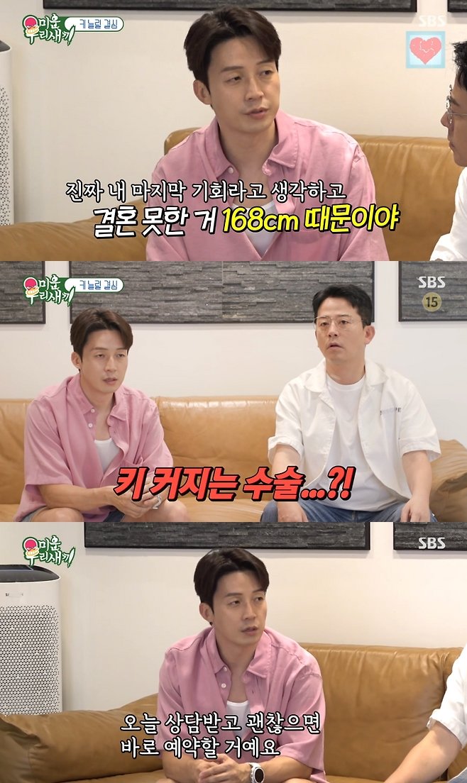 "결혼 못 한 건 키 168㎝ 탓일 수 있다. 마지막 스퍼트를 해야 한다"며 "키 때문에 망설이는 여자들이 몇 명 있었다. 최근 소개팅에서도 키 때문에 힘들었다. 그 친구들이 큰 것도 있지만, 내가 작은 이유도 있다. 위축됐다"고 토로했다. "남들은 늦었다고 하는데 지들이 뭘 알아? 작아봤어?"라고 해 웃음을 줬다.