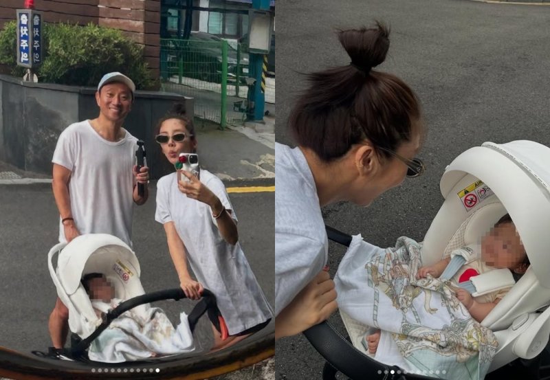 손담비는 지난 11일 자신의 소셜미디어에 "오늘 날씨가 선선해서 세 가족 나들이"라고 적었다.
