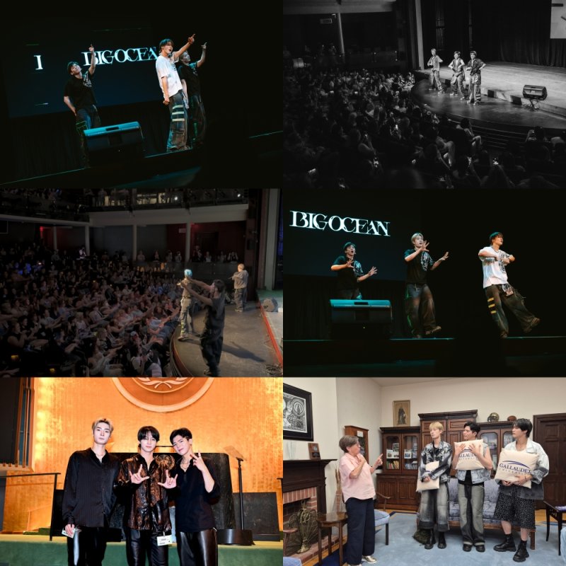 또한 빅오션은 지난 4일 '기술을 통한 포용적인 미래'라는 세션으로 진행된 유엔개발계획(UNDP)의 이벤트에 공식 초청돼 토크와 미니 콘서트를 진행했다. 5일 미국 워싱턴 D.C.에 위치한 세계 유일의 청각장애인을 위한 종합대학교인 갈로뎃 대학교에 초청받아 총장과 만나 인사를 나누고 미니 콘서트를 펼치기도 했다.