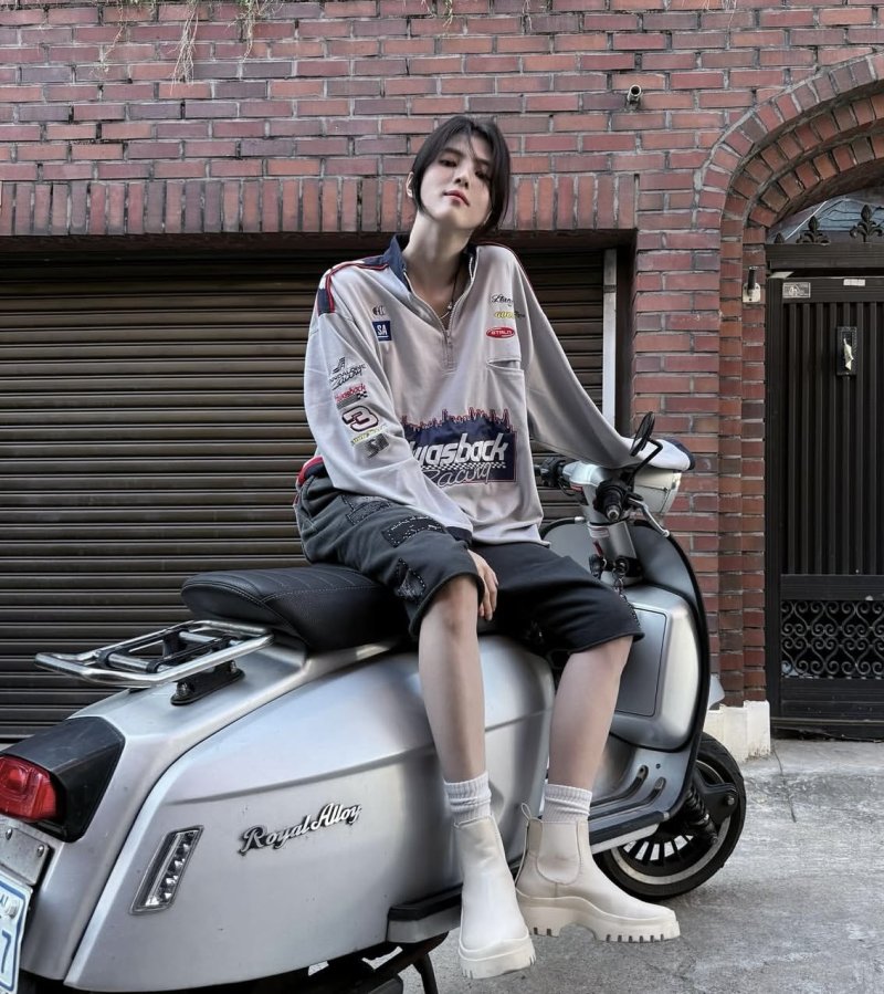 [서울=뉴시스]신지아 인턴 기자 = 배우 한소희가 바이크 위에서 시크한 매력을 뽐냈다.