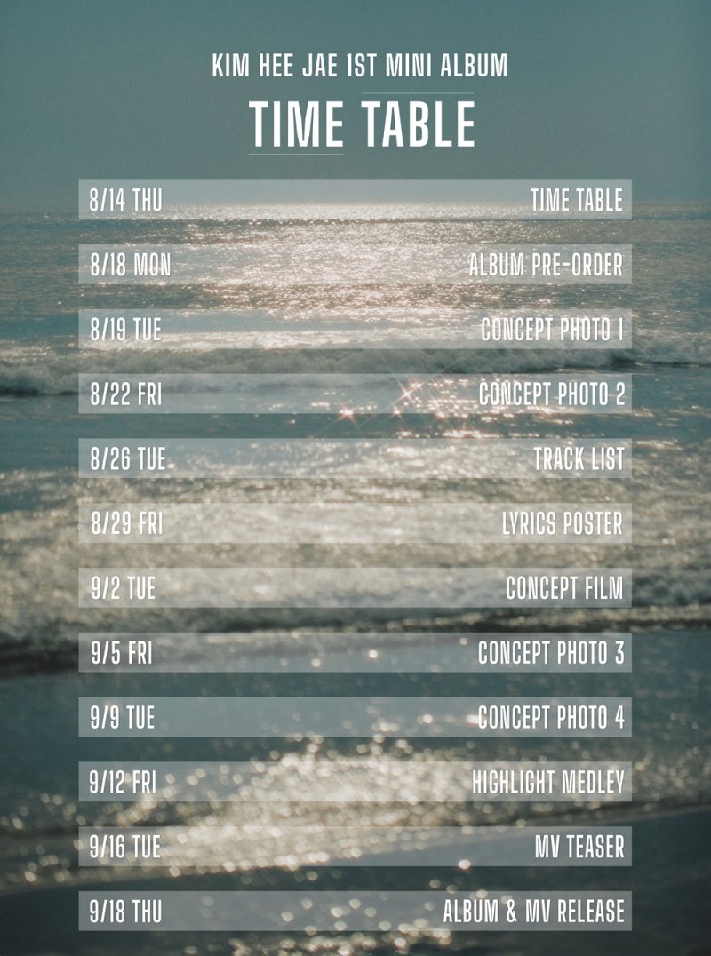 15일 소속사 티엔엔터테인먼트에 따르면, 전날 공식 SNS(소셜미디어)에 김희재의 첫 번째 미니앨범 발매를 알리는 타임테이블을 공개했다.