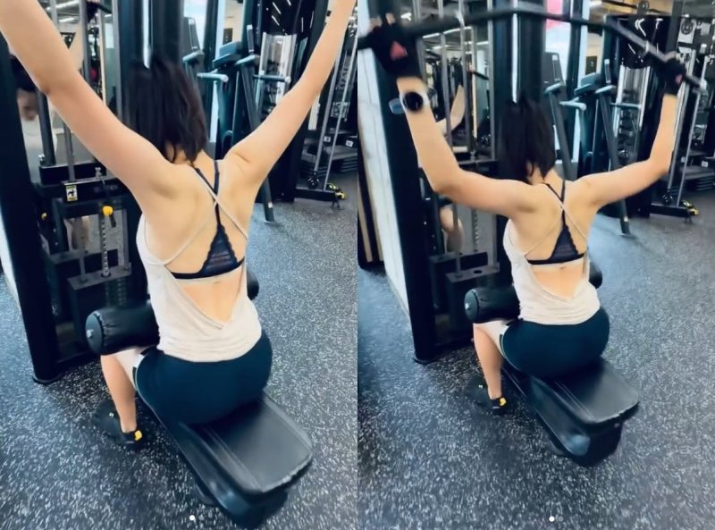 헬스장에서 상체 운동 중인 손예진의 모습이 담겼다.
