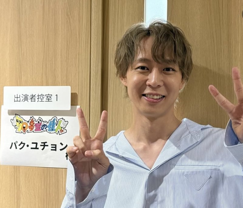 일본 지상파 도쿄MX 프로그램 '70호실의 주인'에 출연한 모습이다. 박유천은 대기실 앞에서 양손으로 브이 포즈를 취하기도 했다.