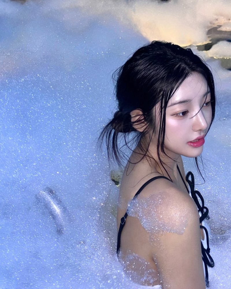 그녀는 몸 일부가 거품으로 가려진 뒤태를 선보이며 매혹적인 분위기를 연출하기도 했다.