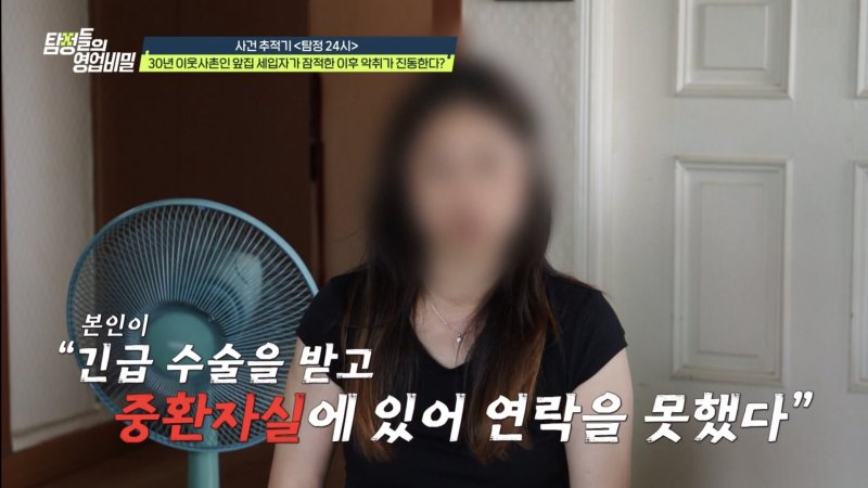 악취의 근원지인 앞집 세입자는 올해 2월 "연락 두절된 남편을 찾으러 서울에 간다"며 떠났다. 이후 세입자는 "제가 긴급 수술을 받고 중환자실에 있다"는 연락을 끝으로 행방이 묘연한 상태였다.