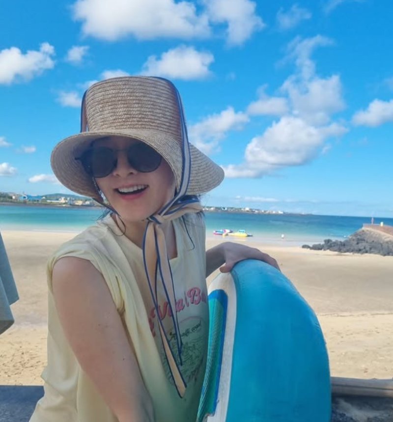 밀짚모자와 선글라스를 착용한 채 환하게 미소 짓는가 하면, 열대 과일을 들고 카메라를 바라보며 청순한 매력을 뽐냈다.