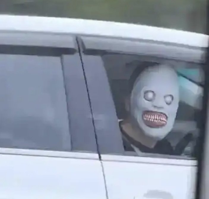 영상 속 인물은 조수석 창문을 내린 채 공포 분위기의 가면을 쓴 얼굴을 밖으로 내밀어 옆 차를 쳐다봤다.