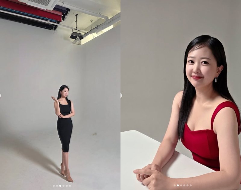 사진 속 김다예는 빨간색과 짙은 녹색 드레스를 입고 늘씬한 몸매를 자랑했다.