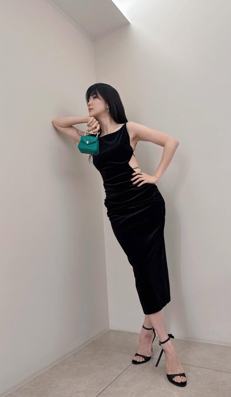 [서울=뉴시스]신지아 인턴 기자 = 배우 박하선이 등이 깊게 파인 블랙 원피스를 소화했다.