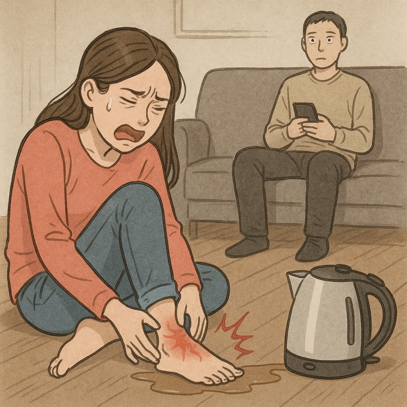 그녀는 "너무 뜨겁고 아파서 주저앉아있는데 예비 신랑이 '헐' 하더니 빤히 쳐다보다가 소파로 가서 앉아 유튜브만 보더라. 하다못해 '괜찮아?'라는 한마디도 없었다"면서 "전 주저앉은 상태로 예비 신랑을 올려다보는데 아무 생각 없는 동태눈깔로 가만히 저를 쳐다보는 눈빛을 잊을 수 없다"고 하소연했다.