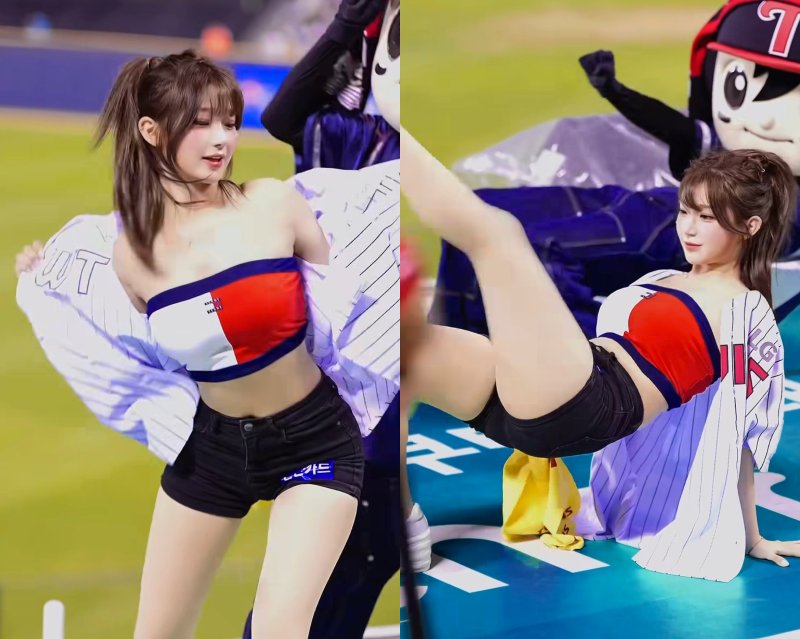 이날 그녀는 LG트윈스 응원복을 풀어 헤친 채 과감한 춤사위를 선보였다. 특히 도중에 상의를 벗어 던지며 뽀얀 어깨를 드러내자, 관중석의 환호가 쏟아졌다.