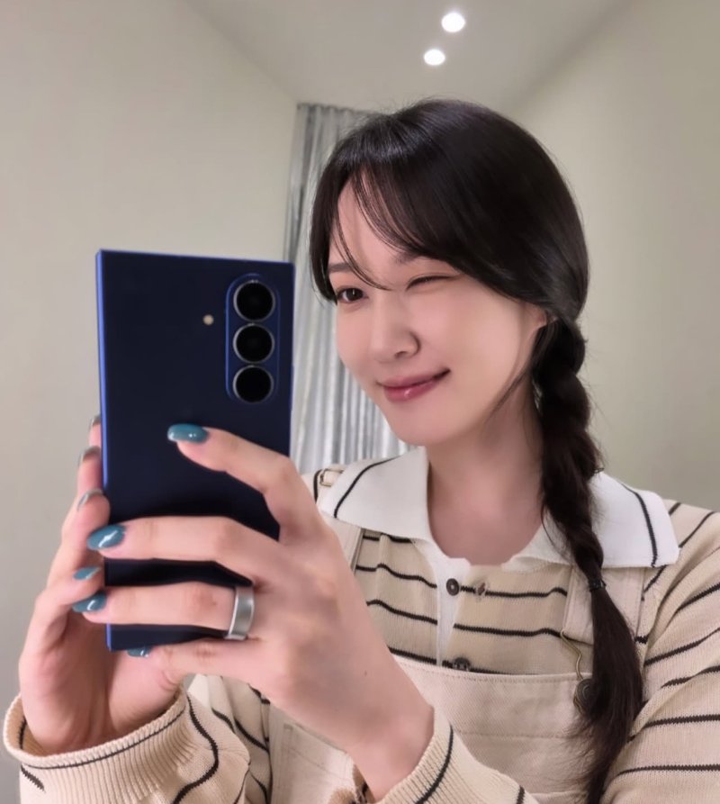 사진 속 박은빈은 윙크를 하며 거울 셀카를 찍고 있다.