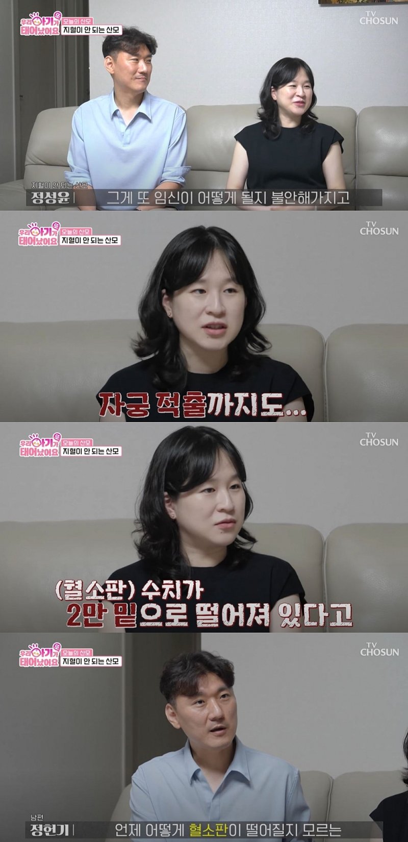 지난달 30일 방송한 TV조선 예능 프로그램 '우리 아기가 또 태어났어요'에선 혈소판 감소증 산모 출산 과정이 공개됐다.
