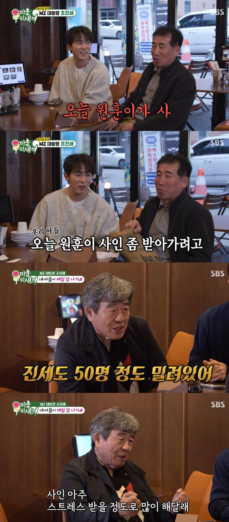 조진세 아버지는 "지금 나도 50명 정도 사인이 몰려있다"며 "스트레스 받을 정도로 많이 해달라고 한다"고 했다.