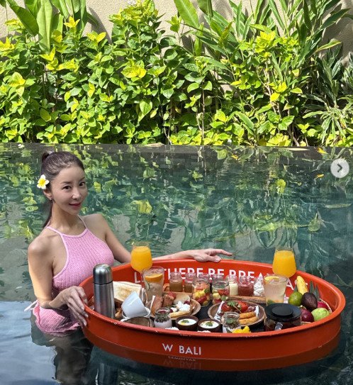 이와 함께 올라온 사진에는 발리에서 행복한 시간을 보내는 원진서의 모습이 담겼다. 그는 아침 식사를 풀 위에 띄워주는 플로팅 조식을 즐기고 있어 눈길을 끈다. 특히 원진서는 늘씬한 홀터넥 수영복 자태를 뽐내 감탄을 자아낸다.