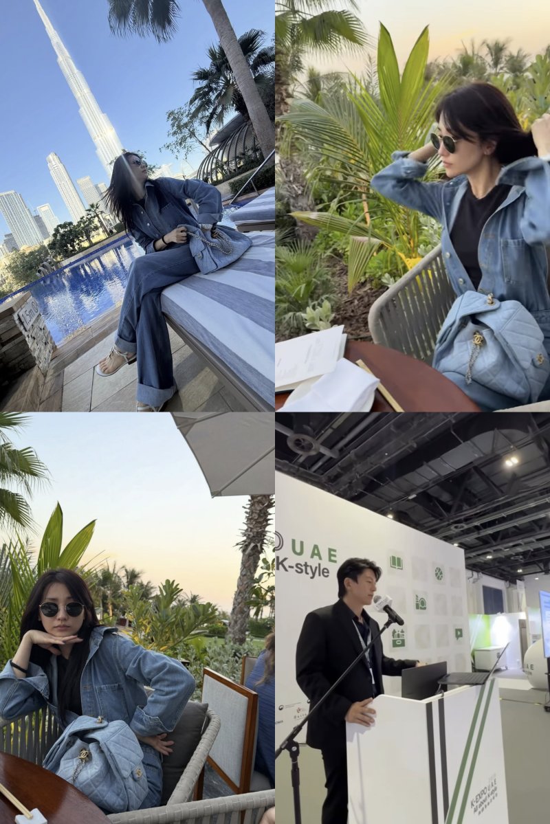 특히 두바이의 랜드마크로 알려진 초고층 빌딩을 배경으로 한 사진에서는 여행지 특유의 분위기가 고스란히 담겼다.